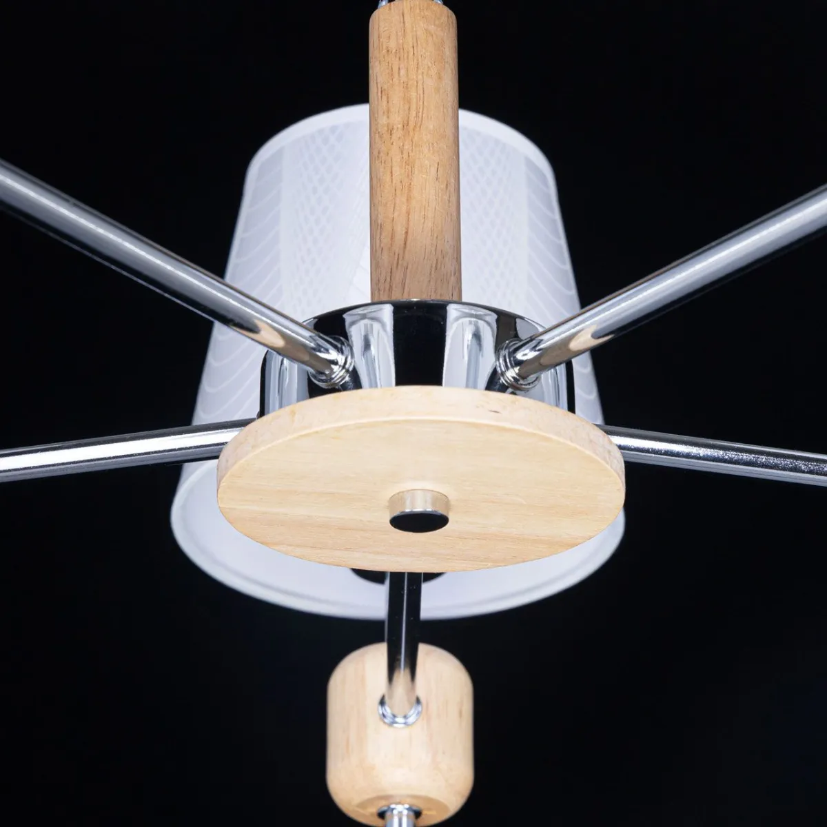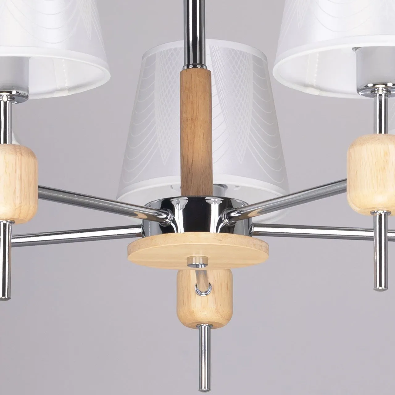 Основание/ металл/ хром Абажур/ текстиль, акрил/ белый, прозрачный Декор/ дерево/ натуральный