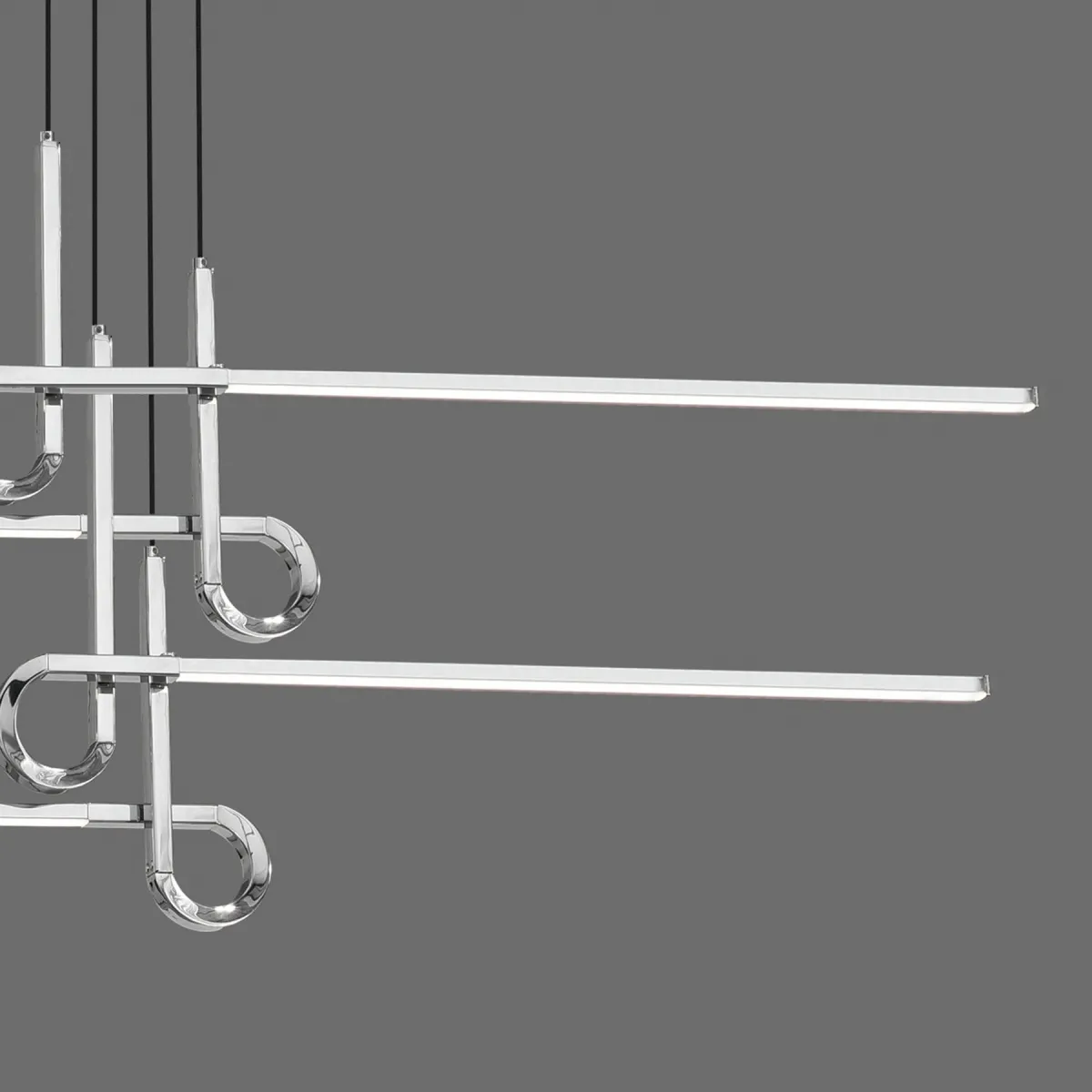 Разработанный Сантьяго Севиллано, CINTO представляет собой набор контрастов между линейностью света и его изогнутых металлических соединений. Такая конструкция обеспечивает элегантность и дают намек на интригу.