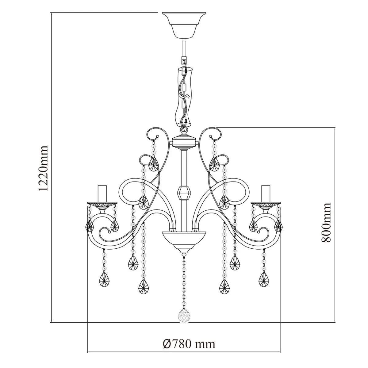 Металлическое основание цвета хрома, декоративные подвески из хрусталя