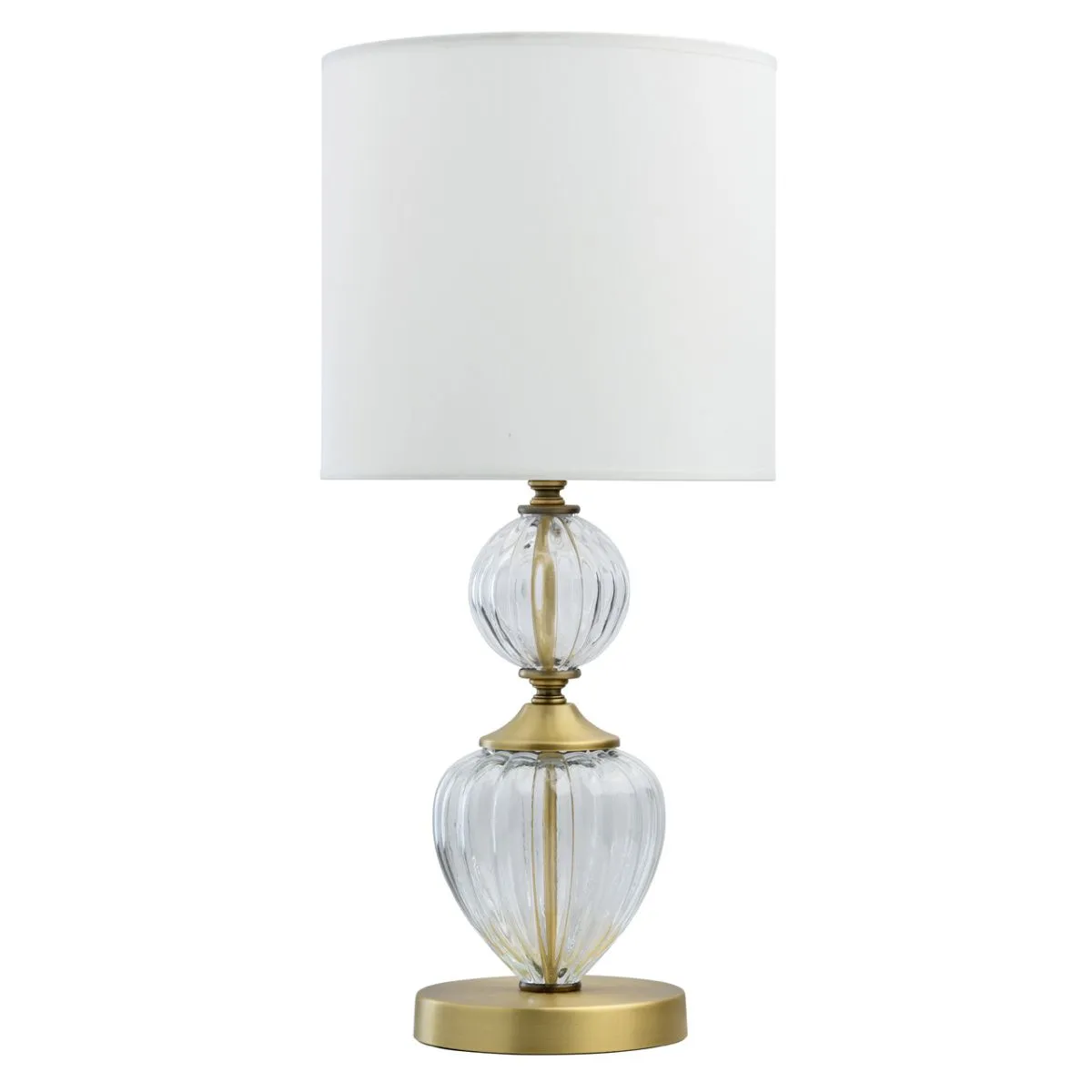 Металлическое основание цвета латуни. Белый абажур.
