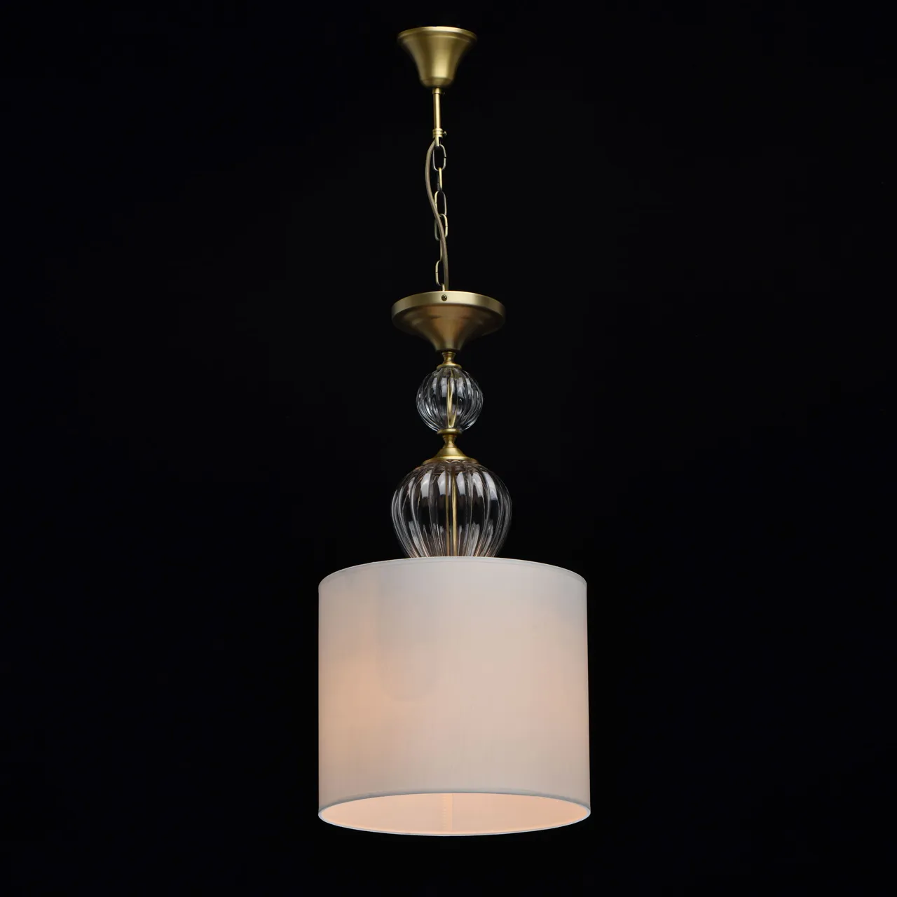 Основание/металл/латунь Абажур/текстиль/белый Декор/стекло